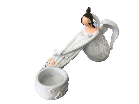 Andělka s kalíškem na svíčku menší. Materiál polyrezin. Rozměr: 21 x 14 x 9 cm. |