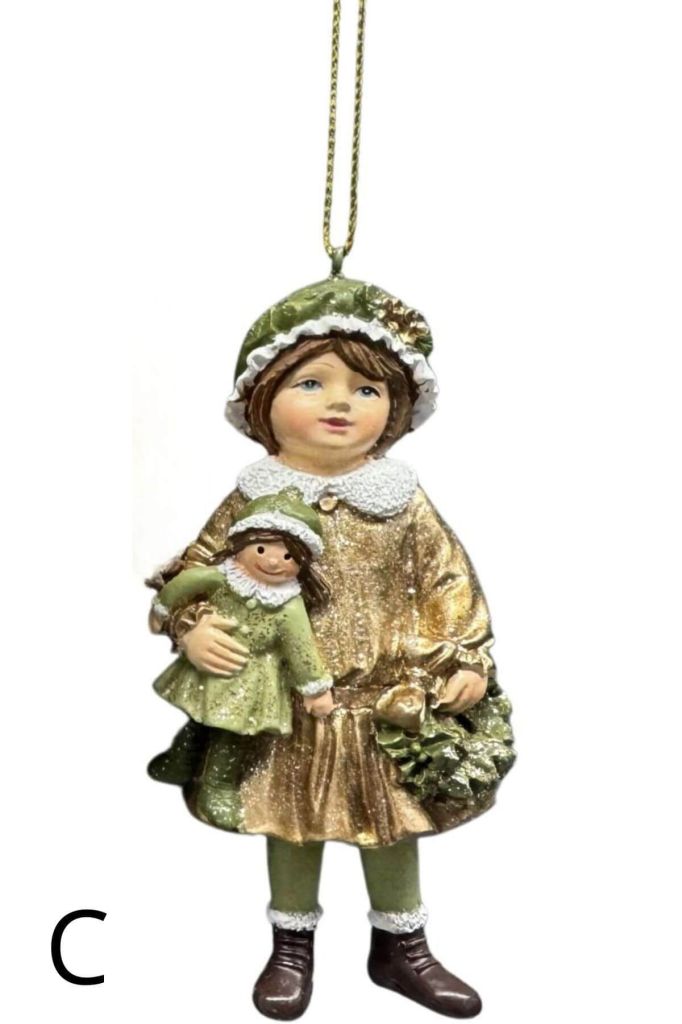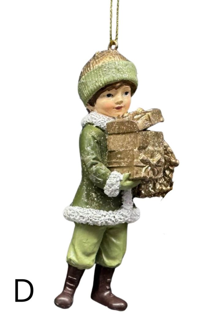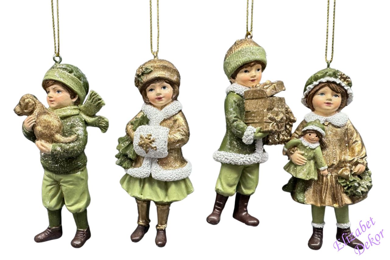 Zelená a zlatá vánoční figurka chlapce nebo dívky je vhodná jako vánoční ozdoba na vánoční stromeček, můžete ji také použít v různých vánočních dekoracích a aranžmá. |